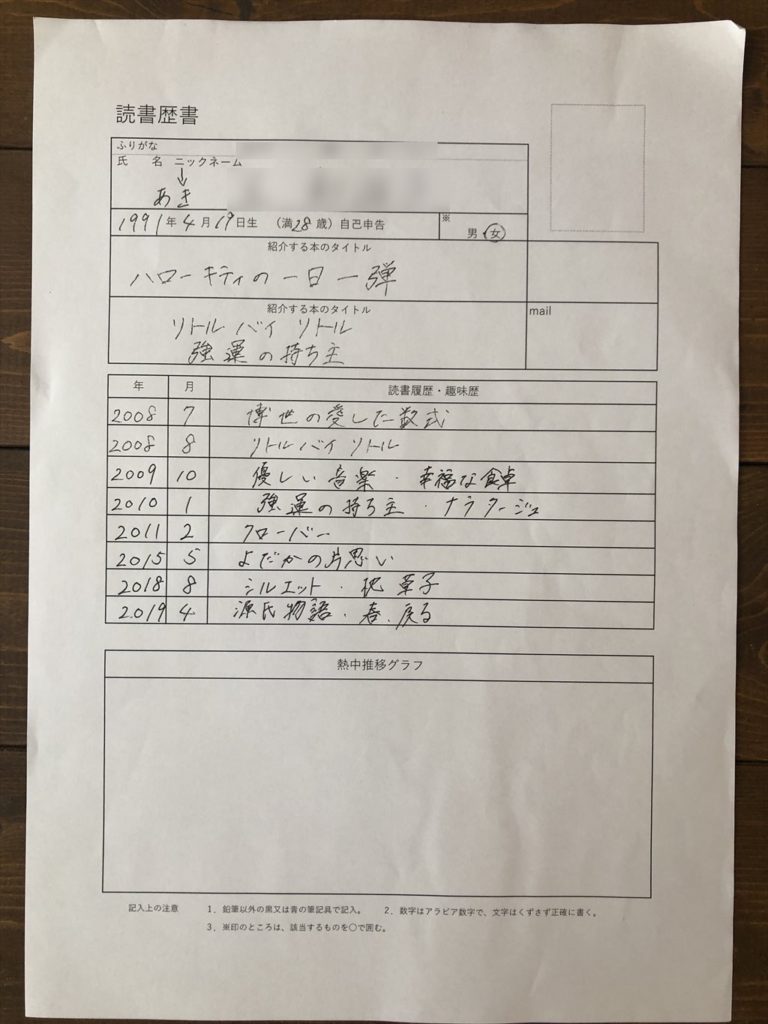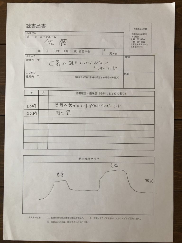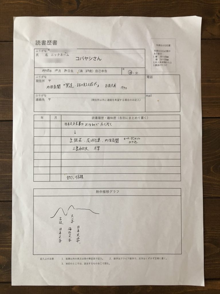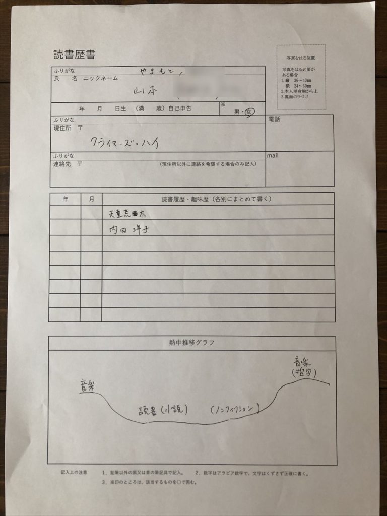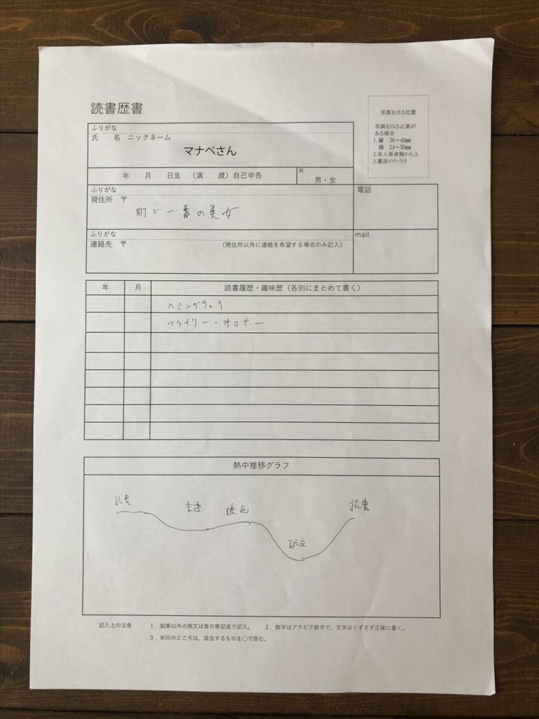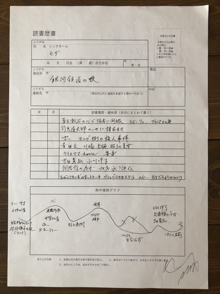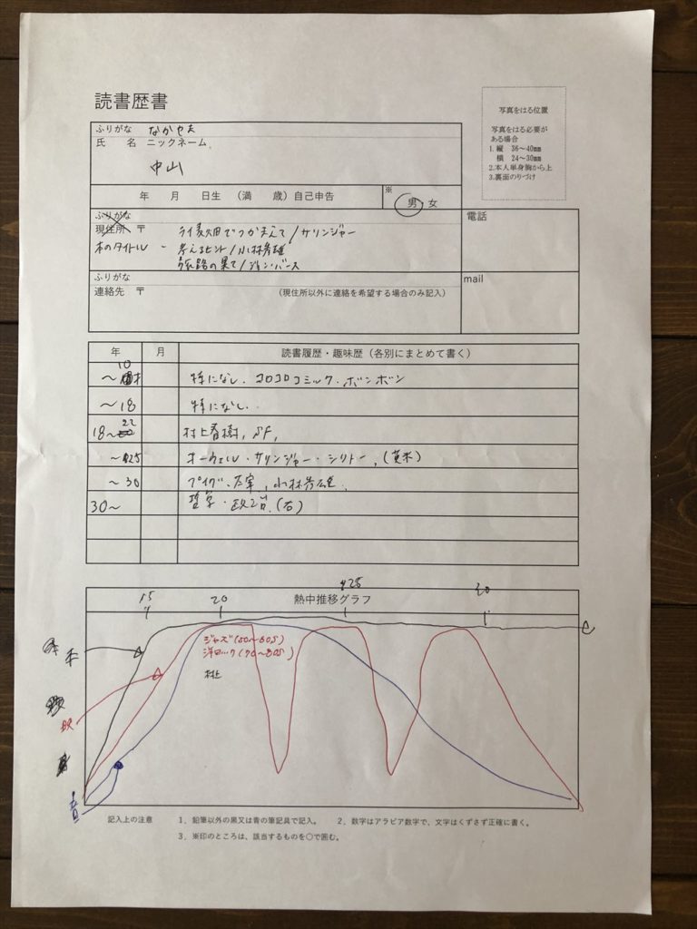 本を中心に今までの人生で何が熱かったのかをグラフにしていただきました。