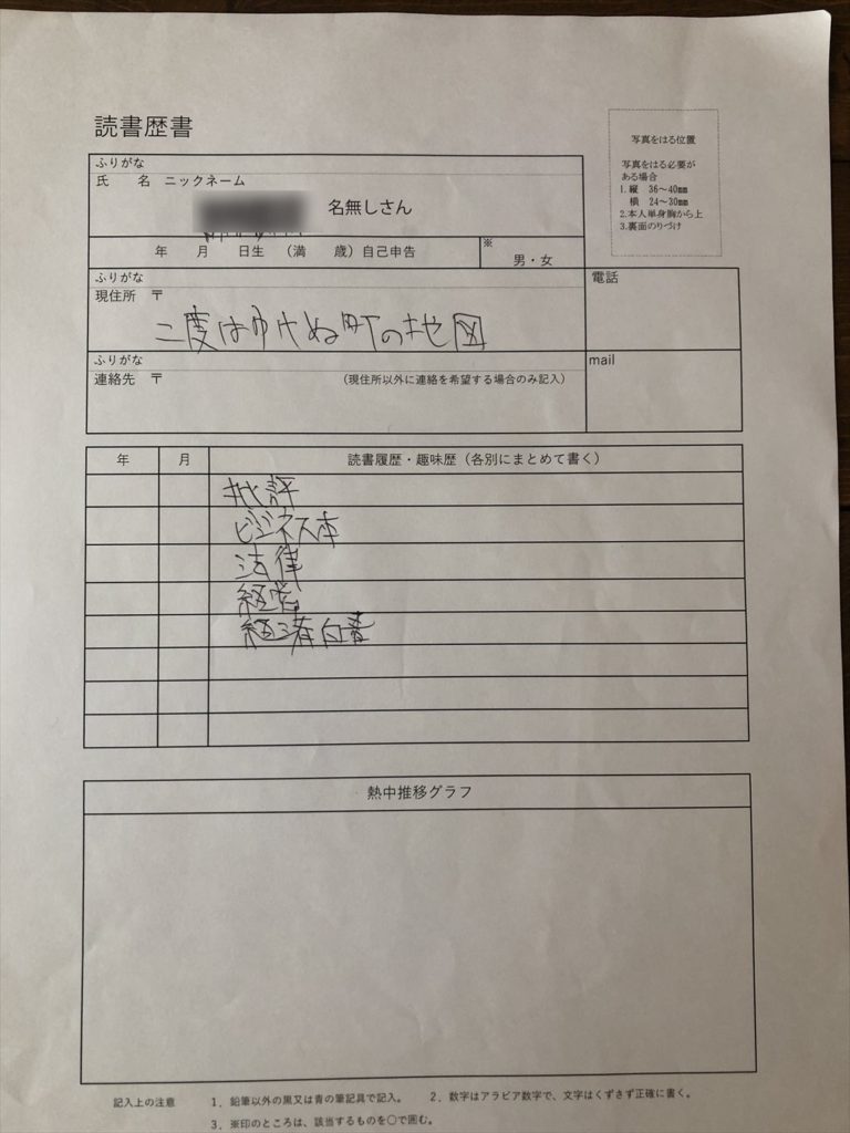 参加者の皆さんには履歴書風の用紙に人生チャート的なモノを書いていただきました。